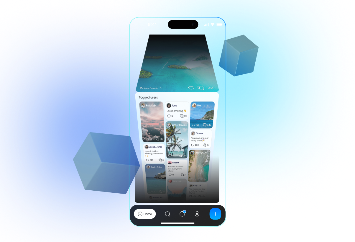 Feed that organizes content into interactive blocks while fostering meaningful engagement.